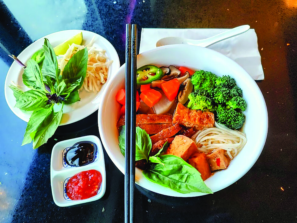 It was love at first slurp when we sampled the pho at Lotus Moon, a family-owned Vietnamese plant-based restaurant. The surprisingly rich broth is filled with noodles, tender vegetables and shitake mushrooms. Big bowls are topped with five spice “beef” or fried tofu and sided with the classic herbs, chilies and lime as a garnish. Lotus Moon’s vegan banh mi sandwich is a big mouthful of flavor and crunch.