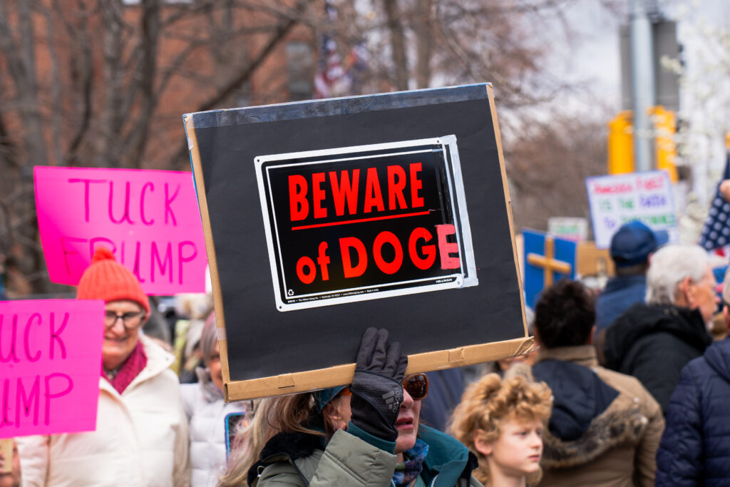 The crowd, which by some unofficial estimates reached anywhere between 4,000 and 5,000 people, joined in with 1,400 other events across the country in a mass organization called “Hands Off!” to show opposition to President Donald Trump and Elon Musk.